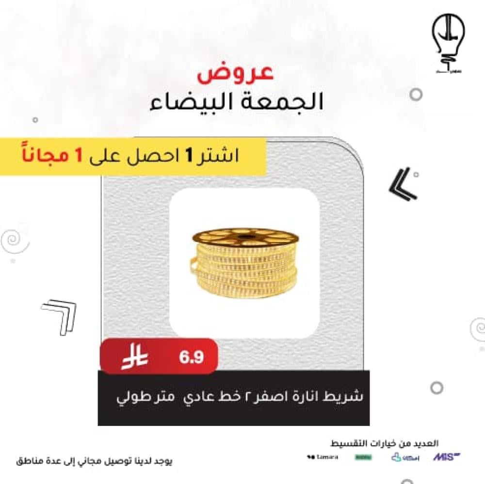 شريط انارة اصفر 2 خط عادي م . ع متر طولي