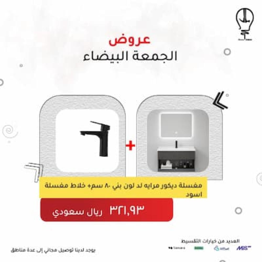 تحتوي المغسلة على مرايا مربعة الشكل ومحاطة بـ إضاءة ليد على كامل اطار المرايا , وخزانة سفليه للتخزين